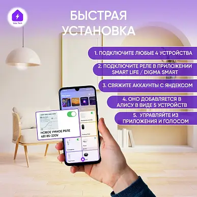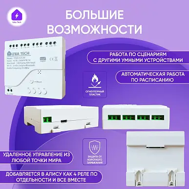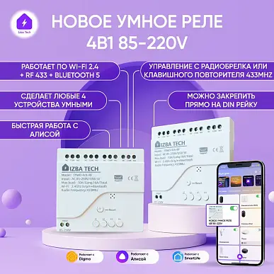 Умное реле на 4 устройства Это инновационное устройство электроники, специально разработанное для вашего умного дома. У этого умного реле есть множество преимуществ и возможностей, которые с легкостью помогут вам автоматизировать управление электрическими устройствами в доме. Совместимость этого умного реле с Яндекс Алиса делает его идеальным выбором для владельцев домашнего логического помощника. Вы сможете голосовыми командами управлять включением и выключением устройств и другими устройс...