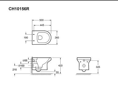 EDX112-00 Elite Rimless подвесной унитаз в комплекте с тонким сиденьем, креплениями