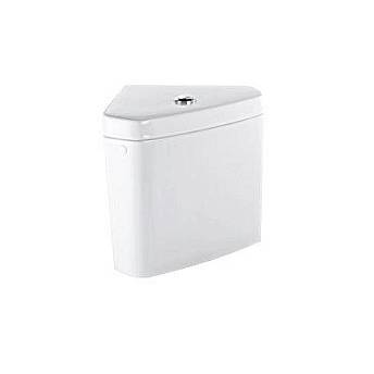 Бачок угловой, белый. Нижняя подводка воды. Механизм экономии воды 3/6 л. Хромированная кнопка. Бесшумный заливной механизм "Quick".