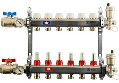 STOUT Коллектор из нержав.стали с расход, с клапаном вып. воздуха и слив 8 вых SMS-0927-000008