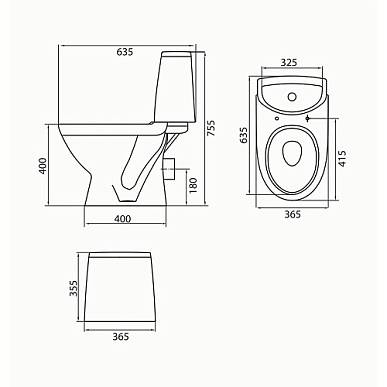 RUNA компакт напольный кос.выпуск бачок 3/6л. нижн.подвод сиденье твердое slow-closing (укр.) унитаз-компакт 365х635х400 мм косой выпуск подвод воды нижний сиденье из дюропласта Soft Close