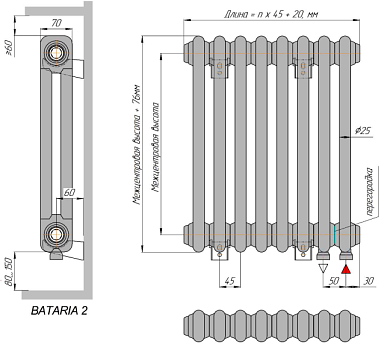Вертикальная установка радиатора Batarìa КЗТО позволяет сэкономить полезное пространство в помещении. Это особенно актуально для небольших комнат, где каждый квадратный метр на вес золота.