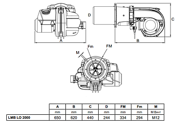 Lamborghini LMB LO 2000 (2 st.-BL) дизельная двухстадийная горелка с цифровым управлением, высоким КПД горения топлива и низким уровнем шума, идеально подходящие для котельных средней и большой мощности.