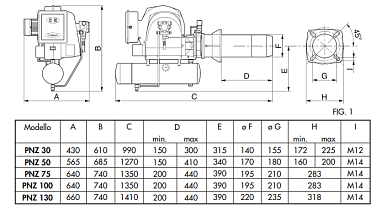 Lamborghini PNZ 130 мазутная горелка компактная, с низким содержанием серы, может устанавливаться на любой топке с высоким давлением наддува, а также может быть приспособлена для использования и на топках с разряжением (в соответствии с рабочим диапазоном). Горелка работает на очищенной от серы нефти, чья вязкость не превышает 12/15°Е, измеренной при температуре 50°С. Эффективность сгорания топлива повышается путём предварительного подогрева. С этой целью предусмотрен резервуар подогревания топлива. В некоторых случаях допускается принудительная подача топлива в подогреватель.