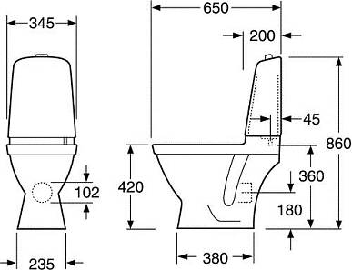 Gustavsberg Nautic унитаз-компакт с горизонтальным выпуском. Жесткое сидение с крышкой (GB115510301225)