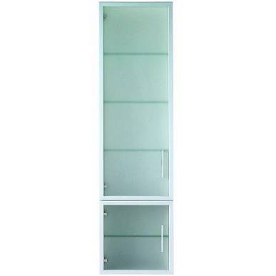 Подвесной пенал. 2 дверцы из безопасного стекла. 4 стеклянные полки. Хромированные ручки. Ширина 380 мм. Поверхность корпуса: белая. Поверхность фасада: белая. 7995.1 дверные петли слева. 7995.2 дверные петли справа.