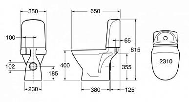 Gustavsberg 2310 Nordic унитаз-компакт с горизонтальным выпуском. Жесткое сиденье с крышкой (GB112310361225)