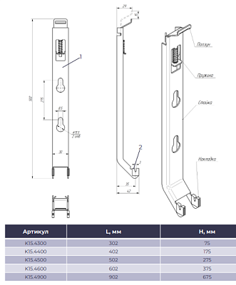 Meteor К15.4400 (400) Кронштейн настенный тип К15.4 используется для крепления стальных панельных радиаторов Meteor (Buderus) к стене. Подходят для стальных радиаторов Meteor (Buderus) типов 20/21/22/30/33 высотой 300, 400, 500, 600 и 900 мм. Рекомендуемое количество кронштейнов: 2 шт. - при длине радиатора от 400 до 1600 мм 3 шт. - при длине радиатора от 1800 до 3000 мм