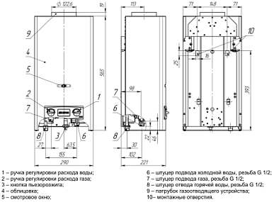 Газовый проточный водонагреватель Neva Lux-5111 (Серебро) имеет довольно рациональное строение. Он состоит из горелки, которая нагревает жидкость, проходящую через теплообменник, и автоматических элементов, гарантирующих надежную деятельность. Рычаги регулирования необходимых температурных показателей находятся на лицевой стенке агрегата.