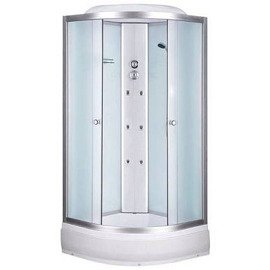 ЗАДНИЕ СТЕНКИ: СТЕКЛО БЕЛОЕ ПЕРЕДНЕЕ СТЕКЛО: МАТОВОЕ ПРОФИЛЬ: МАТОВЫЙ ХРОМ ПОДДОН: НИЗКИЙ ТРОПИЧЕСКИЙ ДУШ ЛЕЙКА 2 РЕЖИМА + КРЕПЛЕНИЕ Гидромассаж 6 форсунок,сифон с гофрой, тропический душ, смеситель 2-х режимный, полочка