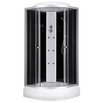 Технические характеристики и описание кабины: гидромассаж, 6 форсунок тропический душ душевая лейка передние стекла: тонированные задние стенки: черное стекло матовый профиль низкий поддон, 26 см
