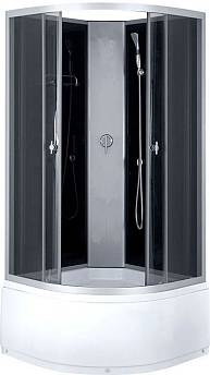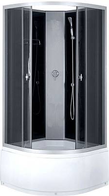 Технические характеристики и описание кабины: душевая лейка передние стекла: тонированные задние стенки: черное стекло матовый профиль высокий поддон на каркасе, высота 45 см (глубина 28 см) съемный экран сифон с гофрой без крыши