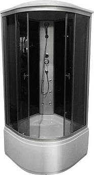 Технические характеристики и описание кабины: гидромассаж, 6 форсунок тропический душ душевая лейка полочка сиденье в поддоне передние стекла: тонированные задние стенки: черное стекло матовый профиль высокий поддон на каркасе, высота 45 см (глубина 28 см) съемный экран сифон с гофрой ...
