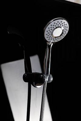 Простейшая комплектация: На крыше - тропический душ, на панели - классическая ручная лейка, полочка.
