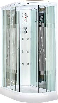 Акриловый поддон на каркасе глубина 7см, Пульт, Радио, Боковая подсветка, Подсветка, Принудительная вентиляция, Гидромассаж 6 форсунок, Тропический душ, Ручной душ 3-х режимный+крепление, Полка, Зеркало, Смеситель 3-х режимный