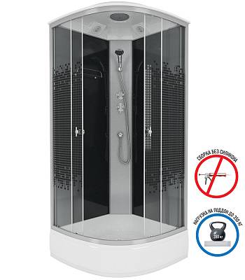 Безсиликоновая душевая кабина Niagara тонированная, рисунок мозаика, средний поддон 26 см.