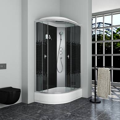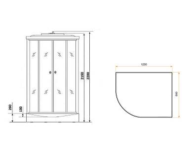 Длина 120 Ширина 80 Высота 215 Турецкая баня нет, установка не предусмотрена Форма угловая асимметричная Тип поддона средний Конструкция дверей раздвижная Количество дверей 2 Задние стенки стекло черное Крыша есть Профиль хром Материал поддона акрил Комплектация полочка, душевая лейка Смеситель классический Высота поддона 26 Материал передних стенок стекло Толщина передних стенок 4 мм Передние стенки прозрачное с рисунком Дополнительные функции тропический душ, вентиляция Моди...