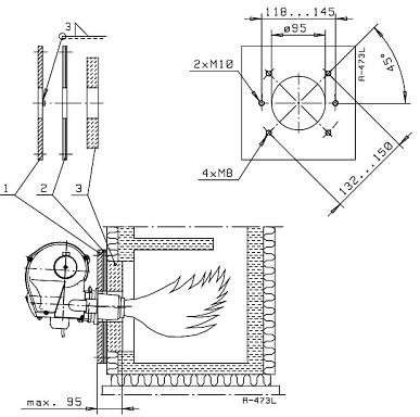 Монтируются в рабочей области так, чтобы основной вал двигателя находился строго горизонтально. Не допускается монтаж стандартных горелок вверх дном. Для таких случаев производителем предусмотрен специальный монтажный набор и соответствующие инструкции по установке. Если факел пламени соприкасается со стенками топки, то такие места требуют предварительной огнеупорной обмуровки. Подключение к электросети производится в соответствии с требованиями поставщика электроэнергии и технической документации горелки. Общее питание осуществляется через разъем, установленный на корпусе горелки, а отдельный провод подключается к термостату котла.