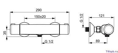 Термостатический смеситель для душа. Включая эксцентрики и декоративные розетки. Ограничитель температуры воды на 38°C на рукоятке . Контроль за расходом воды EcoFlow. В комплект входят обратные клапаны и грязевые фильтры.