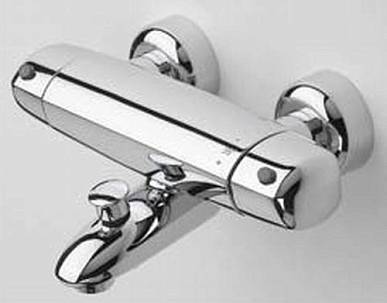 На два отверстия. Наружная установка. Фиксированный излив. Поверхность: хром.