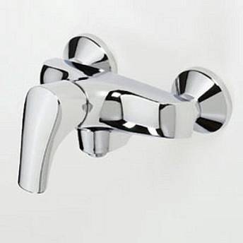 Однорычажный смеситель. На два отверстия. Монтируется на стену. Наружная установка. Поверхность: хром.