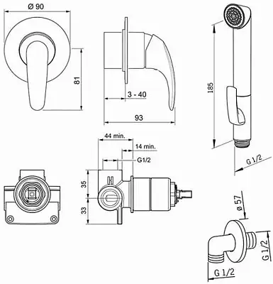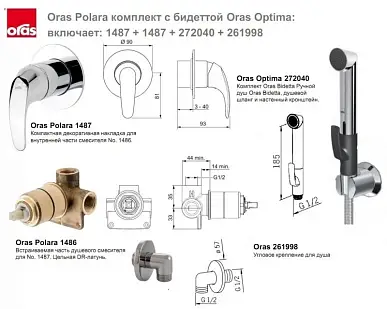 Oras Polara Комплект со встраиваемым смесителем и гигиеническим душем Bidetta, 1488