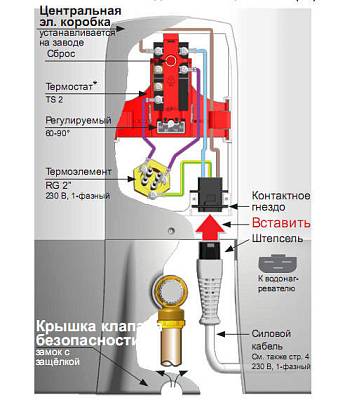 Термостат: TS 2, до 60-90°С, предохранитель 98°С, 30A. Возможен трехфазный термостат TTS.
