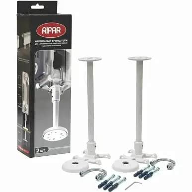 Напольные кронштейны применяют для установки радиаторов с нижним подключением. Напольный кронштейн RIFAR может быть установлен как на черновой, так и на чистовой пол. В случае необходимости уменьшения высоты кронштейна следует отрезать стойку ножовкой по металлу. Состав комплекта: - Стойка – 2 шт. - Дюбель 8х40 мм – 6 шт. - Шуруп 6х50 мм – 6 шт. - Шайба М8 – 4 шт. - Гайка М8 – 4 шт. - Декоративная накладка – 2 шт. - Опорная планка – 2 шт. - Скоба 45 мм L62 мм М8 – 2 шт. - Шестигранный ...