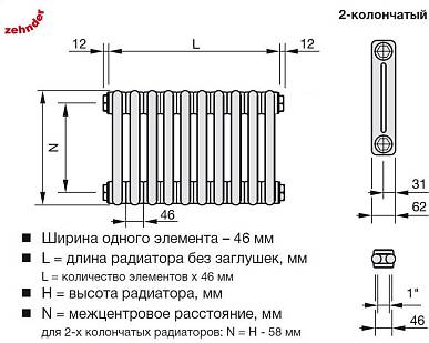 Головка каждой секции радиатора выполнена из стального листа толщиной 1,5 мм. Диаметр труб – 25 мм; Толщина стенки труб – 1,25 мм. Отдельные элементы свариваются в готовый радиатор; радиатор грунтуется, покрывается порошковой эмалью цвета RAL 9016 и подвергается горячему обжигу в соответствии с DIN EN 442. Радиатор поставляется в упаковке готовым к монтажу.