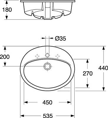 Артикул: 7G285301 Габариты (шгв): 53,5x44x18 Тип: встраиваемая сверху Материал: фарфор Возможна установка над стир. машиной: нет Крепление: к столешнице