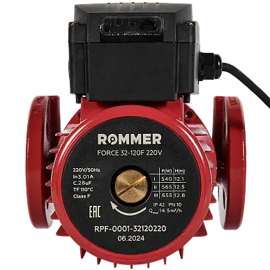 ROMMER Насос циркуляционный FORCE фланцевый, трехскоростной 32-120F 220V RPF-0001-32120220: основные характеристики