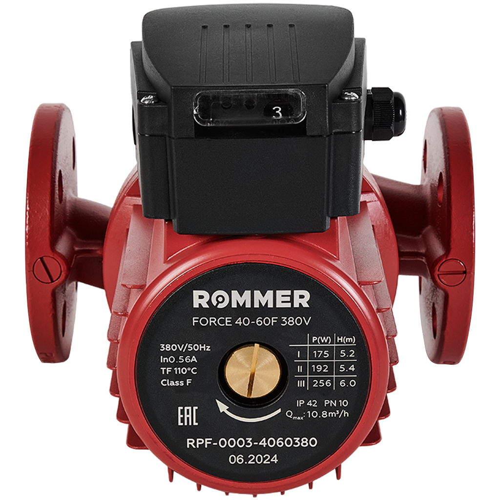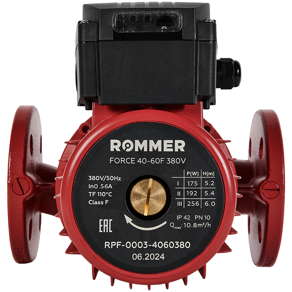 ROMMER Насос циркуляционный FORCE фланцевый трехскоростной 40-60F 380V RPF-0003-4060380: основные характеристики