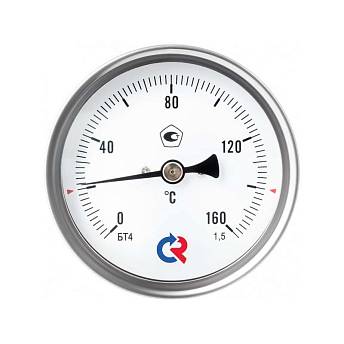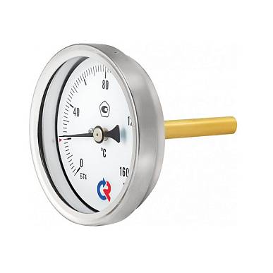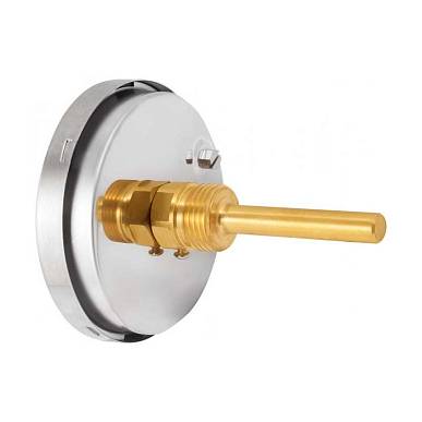 Тип БТ, серия 211. Термометр биметаллический (осевое присоединение) в комплекте с защитной латунной* погружной гильзой. Прибор предназначен для измерения температуры жидкостей, пара и газов в отопительных и санитарных установках, в системах кондиционирования и вентиляции. Принцип действия прибора основан на зависимости деформации чувствительного элемента от измеряемой температуры. В качестве чувствительного элемента используется биметаллическая пружина. Она изготавливается из двух прочно соедине...