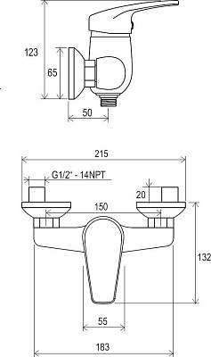 Смеситель для душа настенный Neo: NO 032.00 150 мм, без гарнитуры.