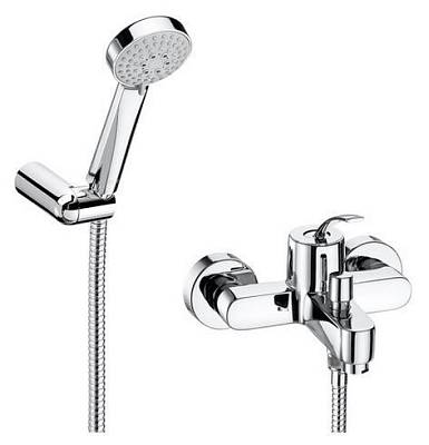Монтируемый в стену смеситель Moai для ванны-душа с автоматическим переключателем с фиксатором, ручным душем Stella 80/3, гибким шлангом 1,70 м и поворотным держателем.