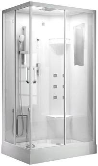 БЕССИЛИКОНОВАЯ сборка Ванны, поддоны экраны и задние стенки - 100% акрил, армированный по всей площади. Сенсорная электронная панель управления S167BTT с радио и функцией BLUETOOTH. Двери из полированного сверпрочного закаленого стекла EN 151120 6мм с антигрязевым покрытием. Ручной душ с силиконовыми форсунками и гладким шлангом. Верхний душ, дверные ручки, накладки на динамик и вентилятор - из нержавеющей стали. Быстросъемные металлические бесшумные двойные ролики. Душевая штанга с регулировкой лейки по высоте. LED подсветка. Слив\перелив из латуни. Массаж ног. Быстросъемный экран на защелках со скрытыми креплениями (модели с высоким поддоном)