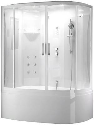 БЕССИЛИКОНОВАЯ сборка Ванны, поддоны экраны и задние стенки - 100% акрил, армированный по всей площади. Сенсорная электронная панель управления S167BTT с радио и функцией BLUETOOTH. Двери из полированного сверпрочного закаленого стекла EN 151120 6мм с антигрязевым покрытием. Ручной душ с силиконовыми форсунками и гладким шлангом. Верхний душ, дверные ручки, накладки на динамик и вентилятор - из нержавеющей стали. Быстросъемные металлические бесшумные двойные ролики. Душевая штанга с регулиров...