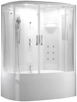 БЕССИЛИКОНОВАЯ сборка Ванны, поддоны экраны и задние стенки - 100% акрил, армированный по всей площади. Сенсорная электронная панель управления S167BTT с радио и функцией BLUETOOTH. Двери из полированного сверпрочного закаленого стекла EN 151120 6мм с антигрязевым покрытием. Ручной душ с силиконовыми форсунками и гладким шлангом. Верхний душ, дверные ручки, накладки на динамик и вентилятор - из нержавеющей стали. Быстросъемные металлические бесшумные двойные ролики. Душевая штанга с регулиров...