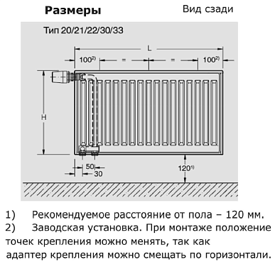 проушины для монтажа кронштейнов - 2 шт. (для радиаторов длинее 1600 мм - 3 шт.)