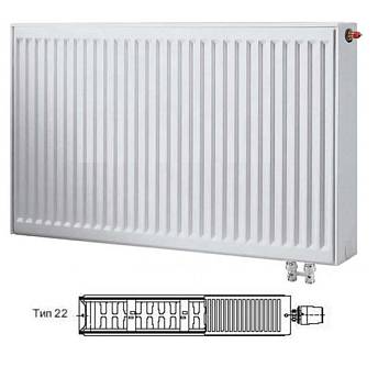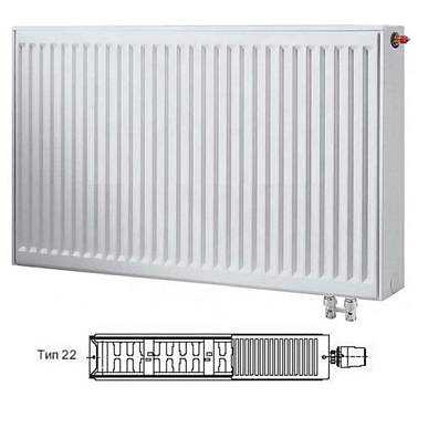 Стальные панельные радиаторы Meteor (Buderus) VK тип 22 – радиаторы c нижним подключением (наружная резьба G3/4), с двумя водопроводящими панелями и двумя конвекционными рядами. Оснащены встроенным вентилем, герметичной заглушкой и воздуховыпускной пробкой. Радиаторы представлены высотами от 300 до 900 мм и длинами от 400 до 2000 мм включительно. Не имеют приварных монтажных скоб, поэтому их можно монтировать любой стороной. Отличаются простотой и скоростью монтажа, а система крепления допускает смещение радиатора в любую сторону на 3-5 сантиметров. При этом нижний узел подключения будет или справа или слева.