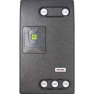 Приготовление горячей воды системой пластинчатых теплообменников для отбора до 20л/мин горячей воды с температурой 50°Cпри температуре воды в накопительном водонагревателе 55°C.Путем постоянной адаптации частоты вращения циркуляционного насоса достигается постоянная температуре воды в точках отбора.Две модификации со штуцером контура циркуляции и без него.