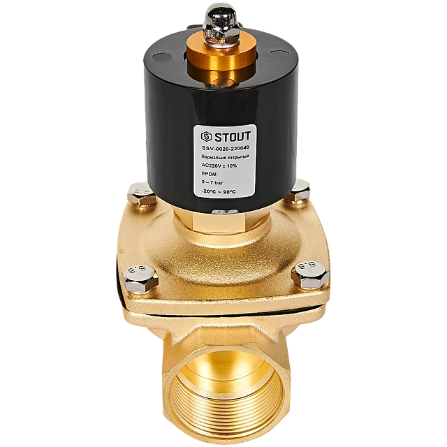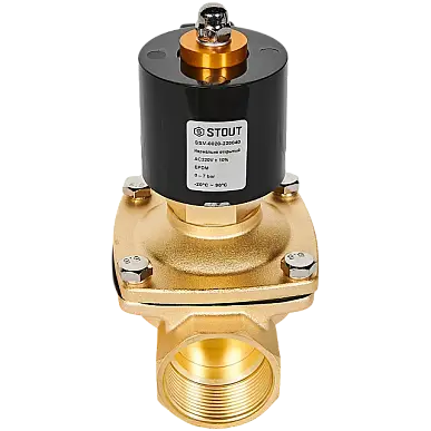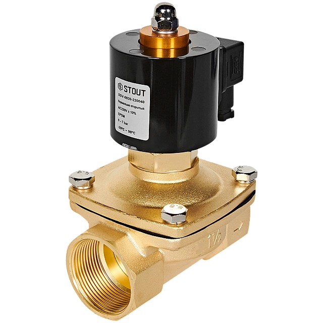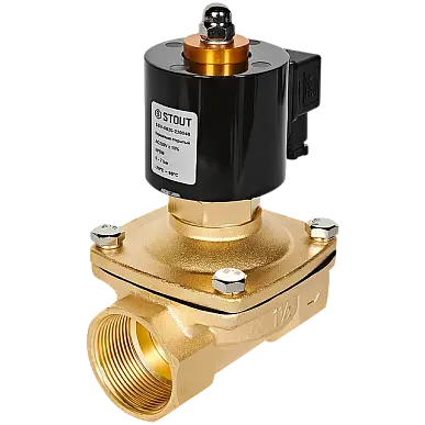STOUT Клапан соленоидный (электромагнитный) прямого действия, НО, 220В, G1 1/2, EPDM SSV-0020-220040