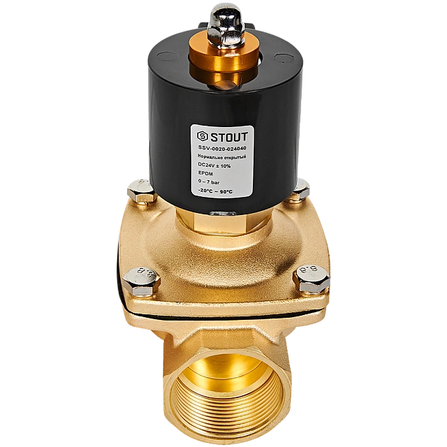 STOUT Клапан соленоидный (электромагнитный), прямого действия, НО, 24В, G1 1/2, EPDM SSV-0020-024040