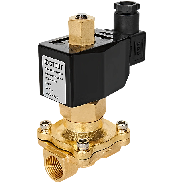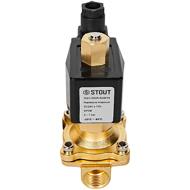 STOUT Клапан соленоидный (электромагнитный), прямого действия, НО, 24В, G1/2, EPDM SSV-0020-024015
