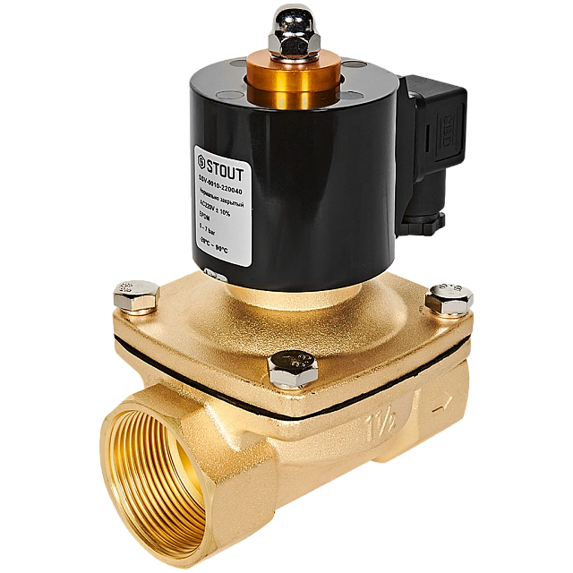 STOUT Клапан соленоидный (электромагнитный), прямого действия, НЗ, 220В, G1 1/2, EPD SSV-0010-220040