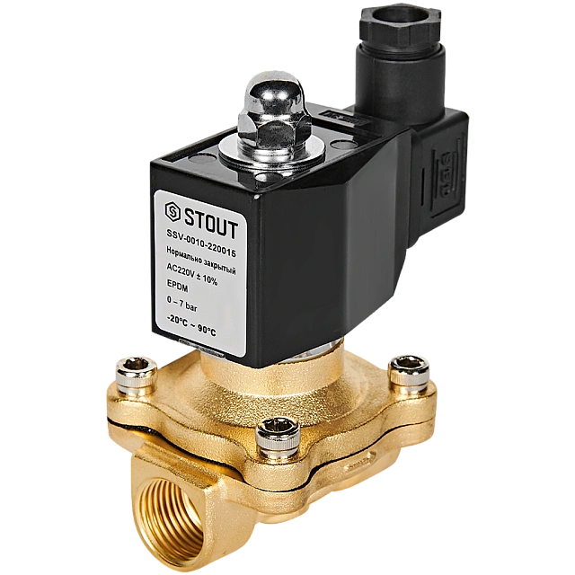 STOUT Клапан соленоидный (электромагнитный), прямого действия, НЗ, 220В, G1/2, EPDM SSV-0010-220015