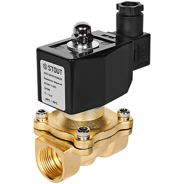 STOUT Клапан соленоидный (электромагнитный), прямого действия, НЗ, 24В, G3/4, EPDM SSV-0010-024020