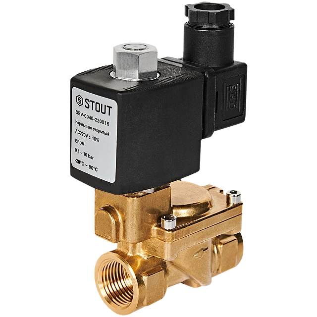STOUT Клапан соленоидный, непрямого действия, НО, 220В, G1/2, EPDM SSV-0040-220015