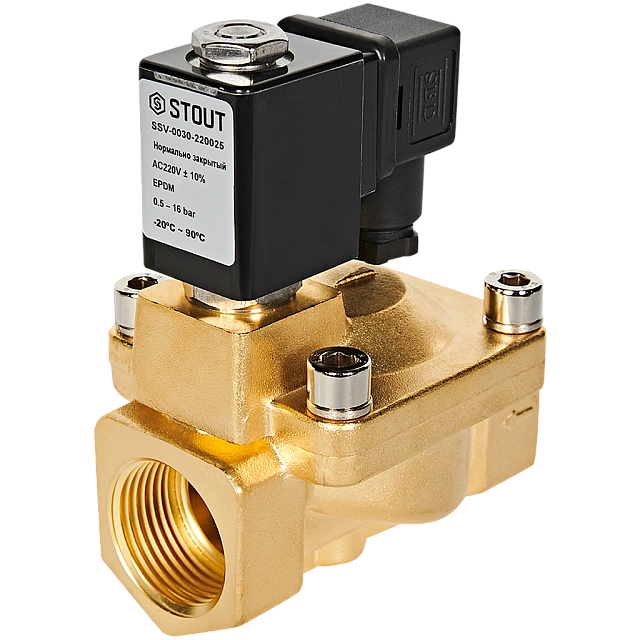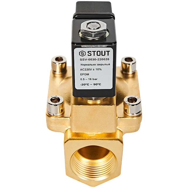 STOUT Клапан соленоидный, непрямого действия, НЗ, 220В, G1, EPDM SSV-0030-220025