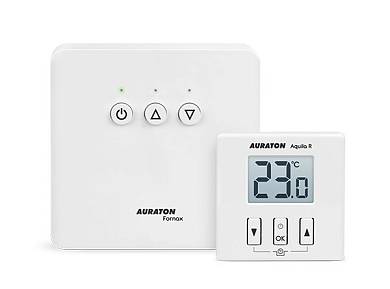 AURATON Aquila SET представляет собой комплект суточного беспроводного регулятора температуры с контроллером нагревательного устройства AURATON Fornax, предназначенного для работы с газовым или электрическим нагревательным устройством.